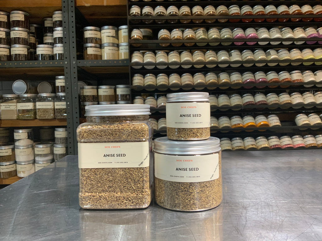 Anise seed has a warm, mellow red licorice note. Use with orange, carrot, and seafood, especially shrimp and shellfish.