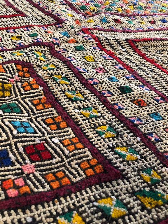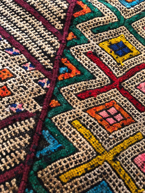 Hand dyed from spices and woven with love in Morocco.