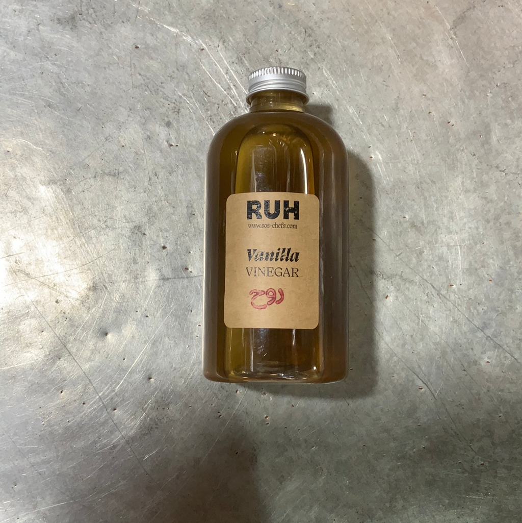 All of our house made vinegars are comprised of cider vinegar and the freshest produce around, we ferment for up to 6 months to infuse the natural fruit flavor into the vinegar. This vanilla variety is aromatic and bright, it would be an excellent accent to fresh sliced berries.